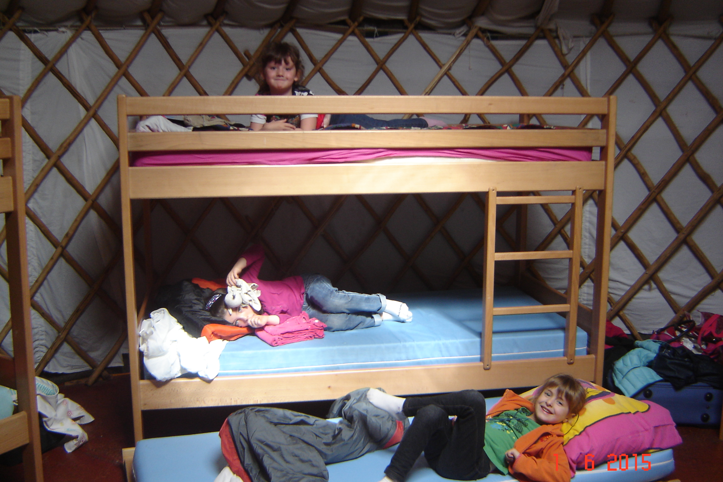 Ils y ont découvert les joies simples du plein air, ensemble : les bruits de la nuit, les moustiques et les araignées, les toilettes sèches, la fraicheur du soir et les lueurs de la nuit, les pipis derrière les arbres, les tartines de pain frais du petit déjeuner, … et … dormir en yourte !
